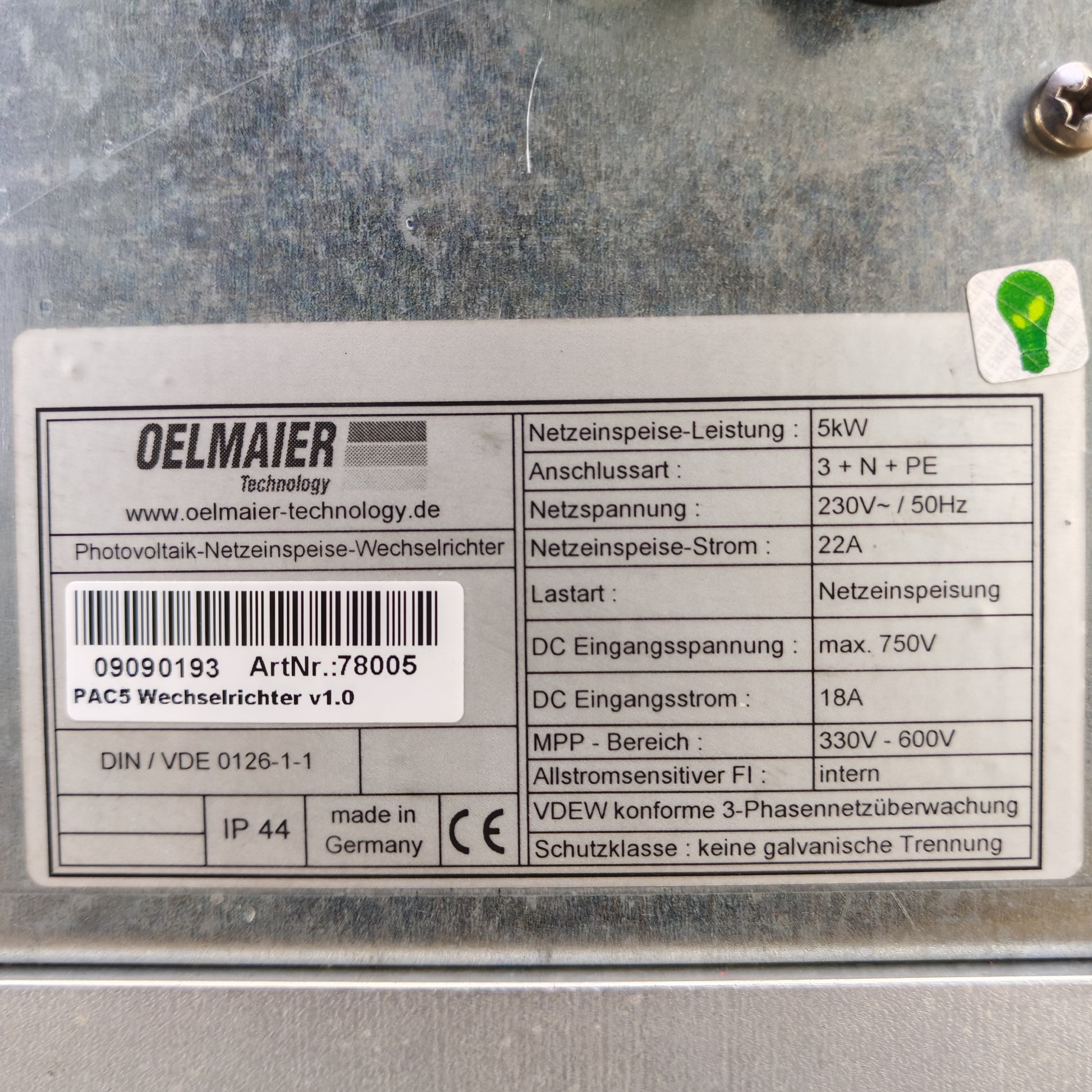 Oelmaier PAC5 Solar Inverter | 5 kW | 3-Phase Grid-Tie | German Quality
